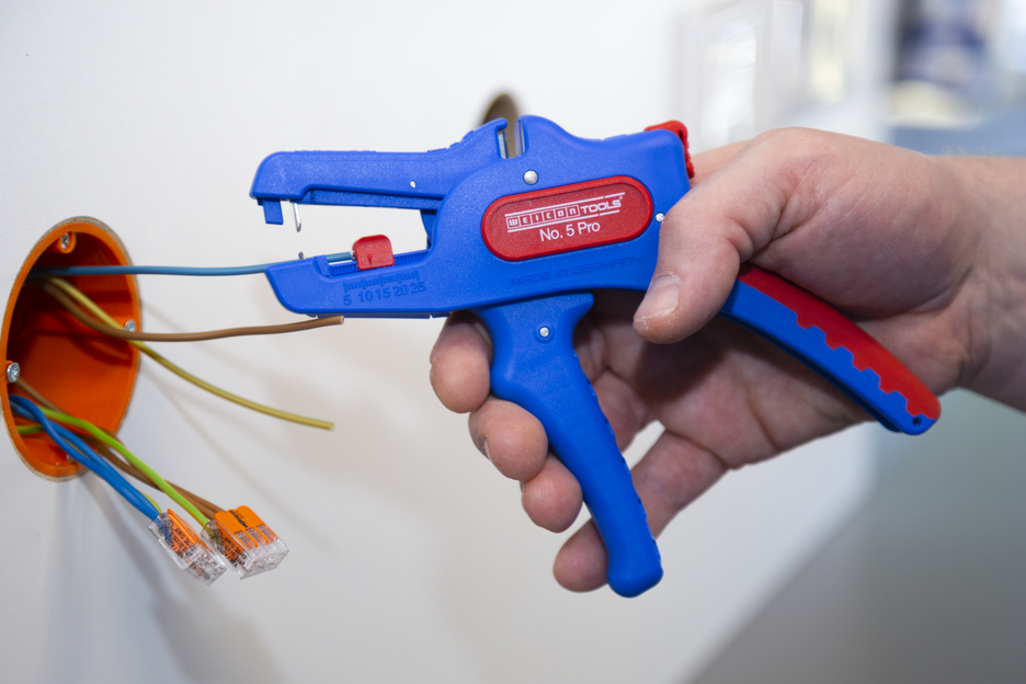 Die automatische Zange dient zum Abisolieren aller gängigen flexiblen und massiven Leiter von 0,2 bis 16 mm². Durch einen verstellbaren Längenanschlag von 5 bis 25 mm wird ein sehr präzises und genaues Arbeiten ermöglicht. Der Längenanschlag kann bei Bedarf auch herausgenommen werden. Die Zange stellt sich automatisch auf den jeweiligen Leiterquerschnitt ein – somit ist keine manuelle Einstellung erforderlich. In die Zange wurde ein Seitenschneider integriert, der sich für Leiter aus Kupfer und Aluminium bis zu einem Durchmesser von drei Millimetern eignet. Durch die schlanke Bauweise des Werkzeugs kann die Zange auch in schwer zugänglichen Arbeitsbereichen, wie beispielsweise in Schaltschränken, zum Einsatz kommen. Die Mechanik der Zange ist sehr leichtgängig und hat sich in Tests als langlebig und zuverlässig erwiesen. Die Zange verfügt über einen rutschfesten Mehrkomponenten-Griff im blau-roten „Ice-Crack“ Design. Durch die ergonomische Griffform liegt das Werkzeug gut in der Hand und gewährleistet ein ermüdungsfreies Arbeiten. Zusätzlich kann die Zange arretiert werden und lässt sich so platzsparend verstauen. Die Abisolierzange verfügt über eine Öse, an der ein Band zur Fallsicherung angebracht werden kann und wurde mit einer Beschriftungsfläche ausgestattet, um das Werkzeug individualisieren zu können.