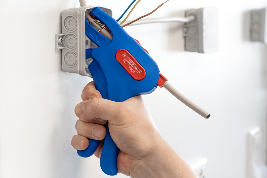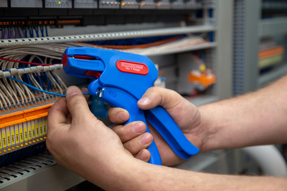 automatische Abisolierzange für alle gängigen flexiblen (0,5 - 16 mm²) und massiven Leiter (0,5 - 10 mm²) | integrierter, gut zugänglicher Seitenschneider bis 3 mm Ø | genaues Arbeiten durch optisches Längenmaß (8 -24 mm) | Der Allrounder zum Entmanteln und Abisolieren