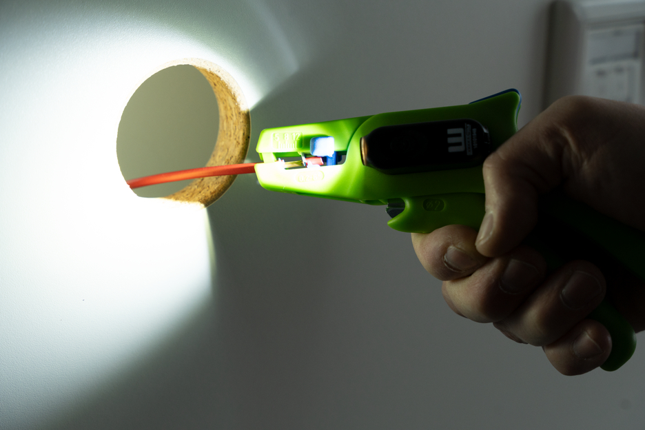 Abisolierwerkzeuge aus bis zu 97 % nachwachsenden Rohstoffen, 2-teiliges Set inkl. Abisolierzange und LED Work light