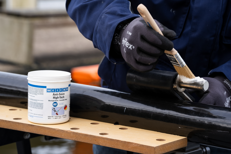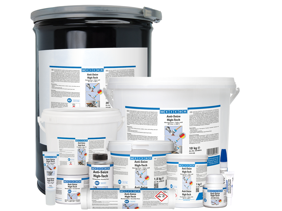 Die Montagepaste WEICON Anti Seize High-Tech ist hochtemperaturbeständig, hat eine außergewöhnlich gute Trennwirkung, ist metallfrei, werkstoffneutral und hat eine NSF-Zulassung. Anti-Seize High-Tech ist eine Festschmierstoffpaste für Metall- Schraubverbindungen und besonders dann geeignet, wenn metallhaltige Pasten elektrolytische Reaktionen hervorrufen können, nickelhaltige Produkte aus Gesundheitsgründen und metallhaltige, dunkle Produkte aus optischen Gründen nicht eingesetzt werden sollen oder dürfen.