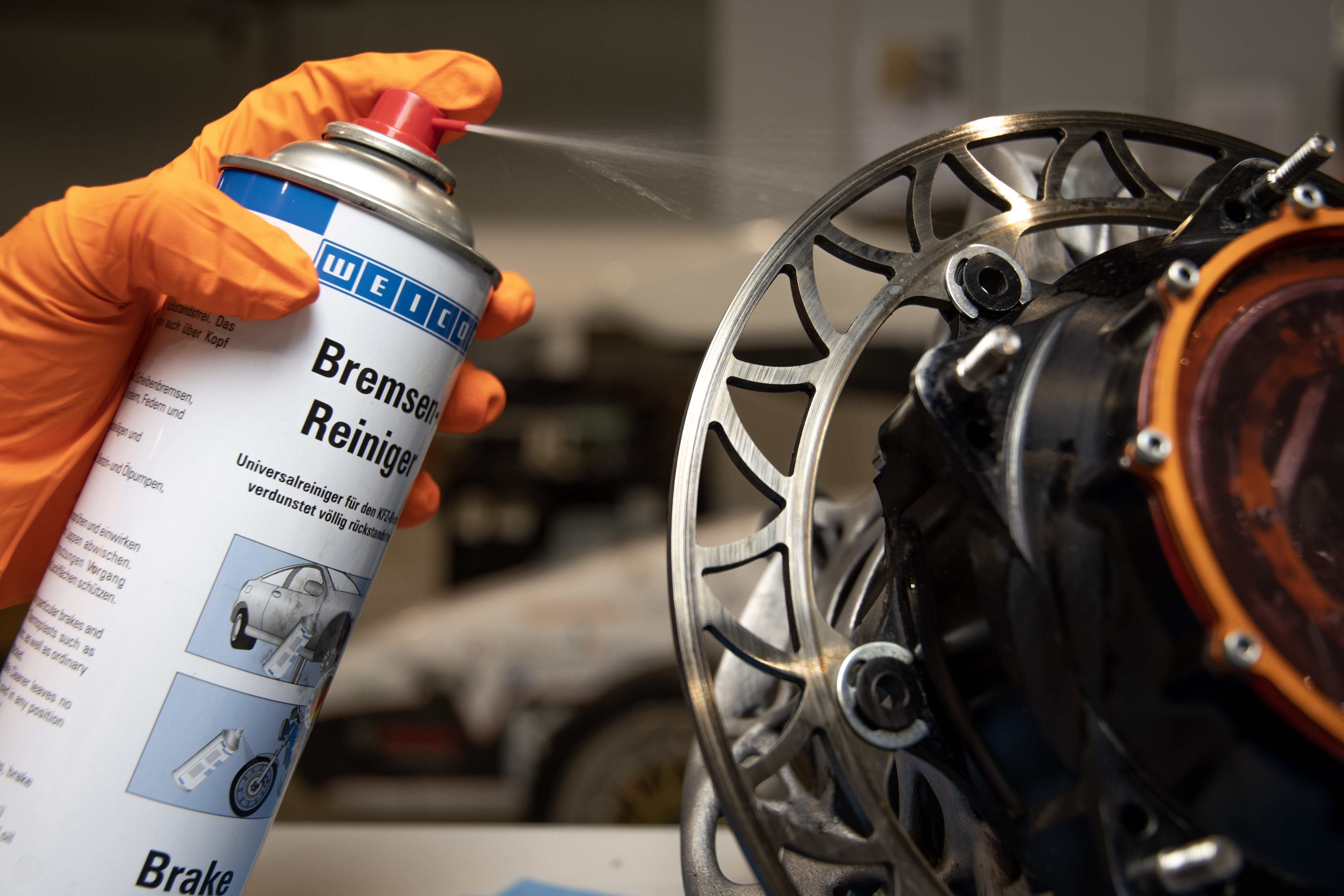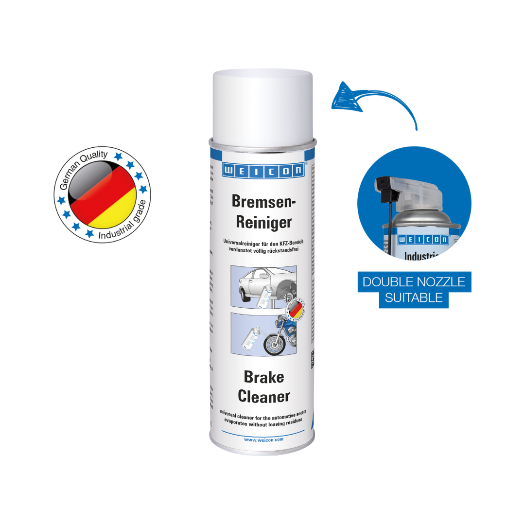 WEICON Bremsenreiniger ist ein Universalreiniger für die Automobilbranche, der reinigt, entfettet und völlig rückstandsfrei verdunstet. WEICON Bremsenreiniger entfettet und reinigt schnell und mühelos Metalle, Glas und viele Kunststoffe und entfernt öl- und fetthaltige Verschmutzungen und Rückstände. WEICON Bremsenreiniger kann an Bremsen (Trommel- und Scheibenbremsen, Belägen, Bremsklötzen, Zylindern, Federn und Buchsen), an Kupplungen (Kupplungsbelägen und -teilen) oder an Motorteilen (Vergasern, Benzin- und Ölpumpen, Getrieben etc.) zum Einsatz kommen.