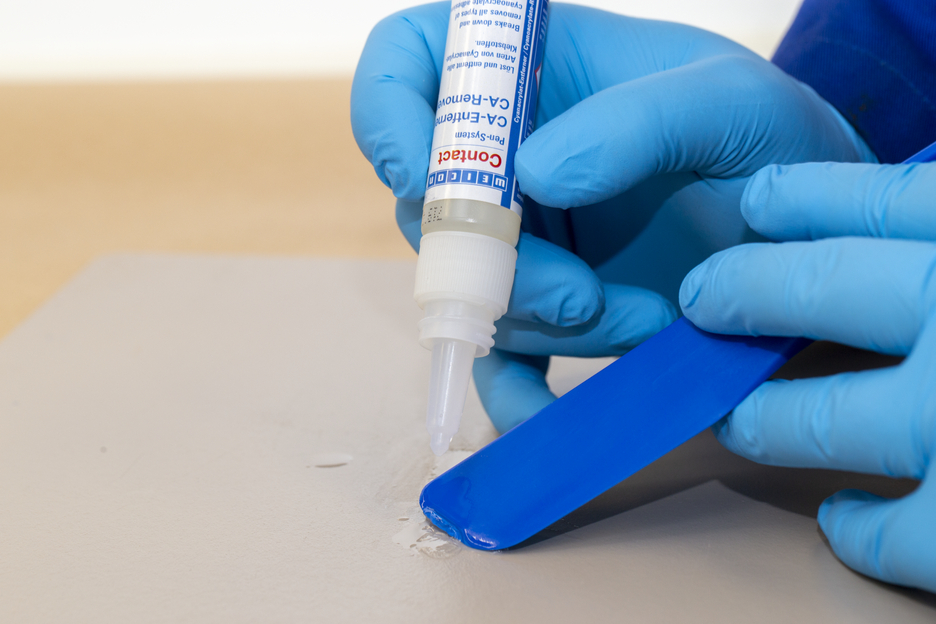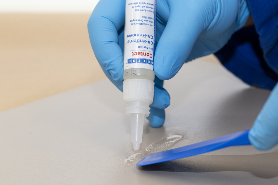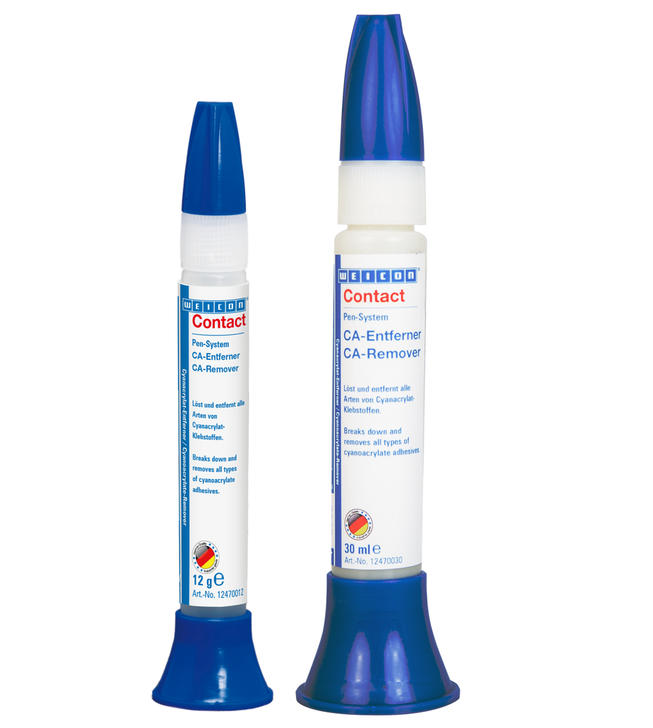 WEICON CA-Entferner löst und entfernt zuverlässig alle Arten von Cyanacrylat-Klebstoffen. Der Entferner eignet sich zur Reinigung von Metallteilen, Werkzeugen und vielen verschiedenen Oberflächen, wie zum Beispiel Arbeitstischen, die mit Cyanacrylat-Klebstoffen in Berührung gekommen sind. Nach einigen Minuten Einwirkzeit kann der angelöste Klebstoff durch Abwischen mit einem fusselfreien Tuch entfernt werden. Bei hartnäckigen Verschmutzungen sollte der Vorgang wiederholt werden. Einige Kunststoffe, Beschichtungen und empfindliche Oberflächen können unter Umständen durch den CA-Entferner angegriffen werden. Die Materialverträglichkeit sollte vorher an einer unauffälligen Stelle getestet werden. Im Gegensatz zu herkömmlichen Lösemitteln ist WEICON CA-Entferner nicht leicht entzündlich und hat einen hohen Flammpunkt von >120 °C.
