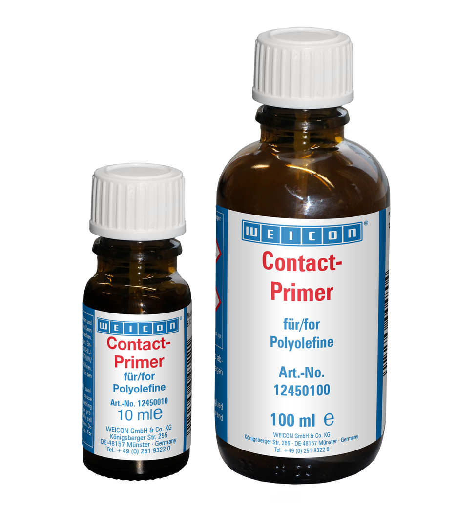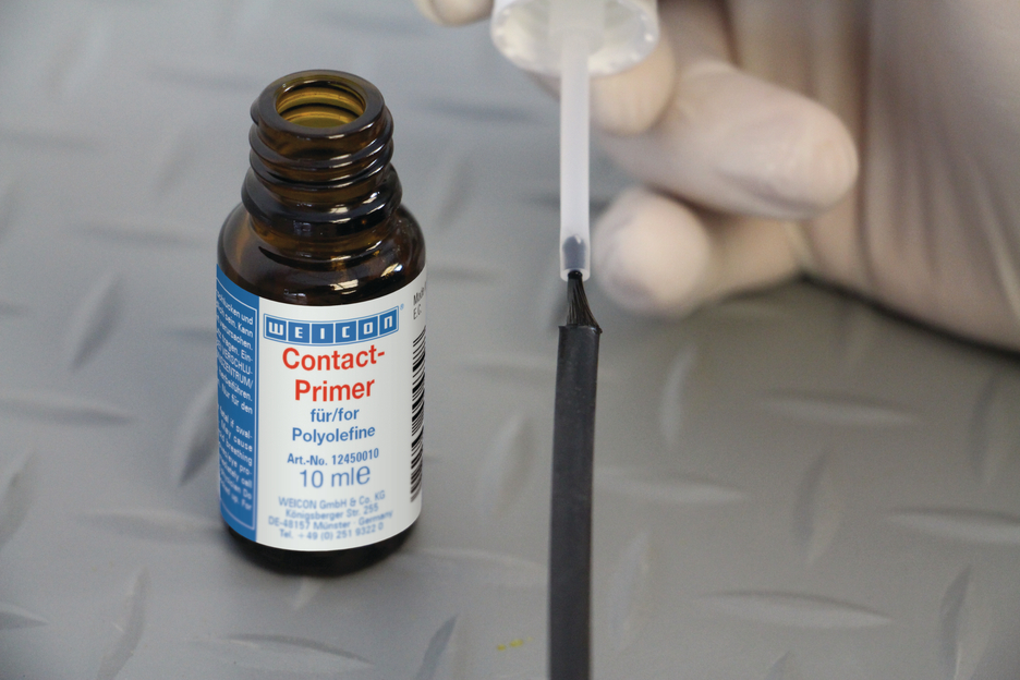 Viele Kunststoffe lassen sich ohne vorherige Behandlung nicht bzw. nur bedingt verkleben. Durch die Vorbehandlung dieser Kunststoffe mit WEICON Contact Primer wird eine Veränderung der Oberflächenstruktur erzielt. Dadurch wird die Verbindung der sonst nur schwer verklebbaren Kunststoffe, z.B. Polyethylen (PE) und Polypropylen (PP) aus der Gruppe der Polyolefine, ermöglicht. Auch moderne thermoplastische Elastomere (TPE), PTFE und damit verwandte Kunststoffe sowie Silikone lassen sich nach Vorbehandlung mit WEICON Contact Primer verkleben.