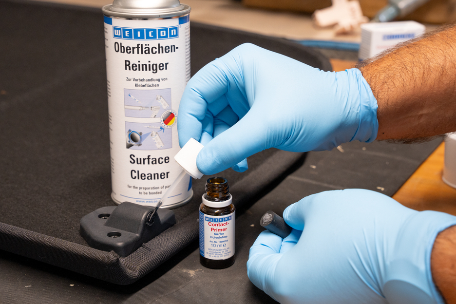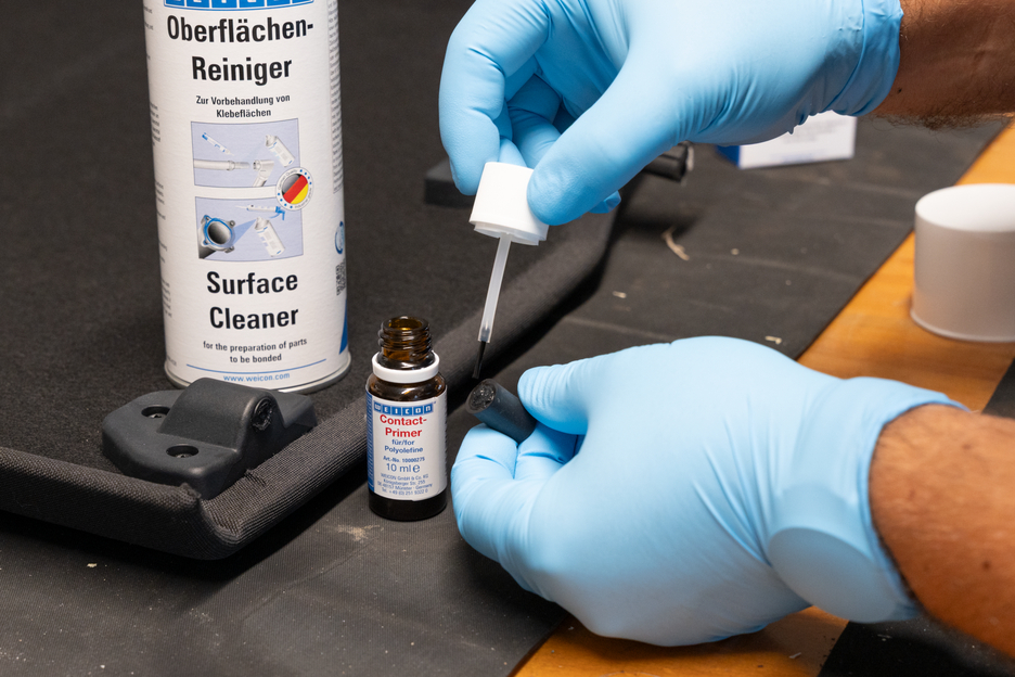 Vorbehandlung zum Verkleben von Polyolefinen mit WEICON Contact Cyanacrylatklebstoffen