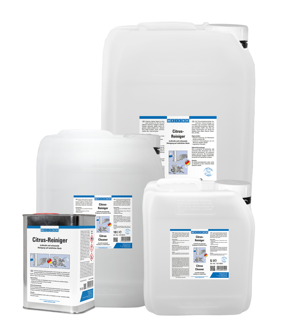 WEICON Citrus-Reiniger ist ein Universalreiniger auf Basis von Alkohol und Citrusschalen-Extrakten. Durch den hohen Isopropanolanteil von über 75% macht sich der WEICON Citrus-Reiniger dessen desinfizierende Wirkung zu Nutze und unterstützt dadurch die gesamtheitliche Reinigung und Desinfektion von Flächen. Er ist universell einsetzbar und kann gleichermaßen in Industrie und Handwerk, im Fensterbau, in öffentlichen Einrichtungen und Verkehrsmitteln, in Bauunternehmen und im Haushalt verwendet werden. Er reinigt die verschiedensten Materialien, wie Metalle und Kunststoffe, Glas, Keramik sowie lackierte oder beschichtete Flächen*. Auch bei der Basishygiene und der Unterstützung von zusätzlichen Hygienemaßnahmen, der Reinigung von häufig genutzten Handwerkzeugen, Verschmutzungen durch Bleistifte, Kugelschreiber und Filzstifte, erzielt WEICON Citrus-Reiniger einen hohen Wirkungsgrad und erreicht hohe Effizienz. *Die Materialverträglichkeit sollte vorher zur Sicherheit an einer verdeckten Stelle überprüft werden.