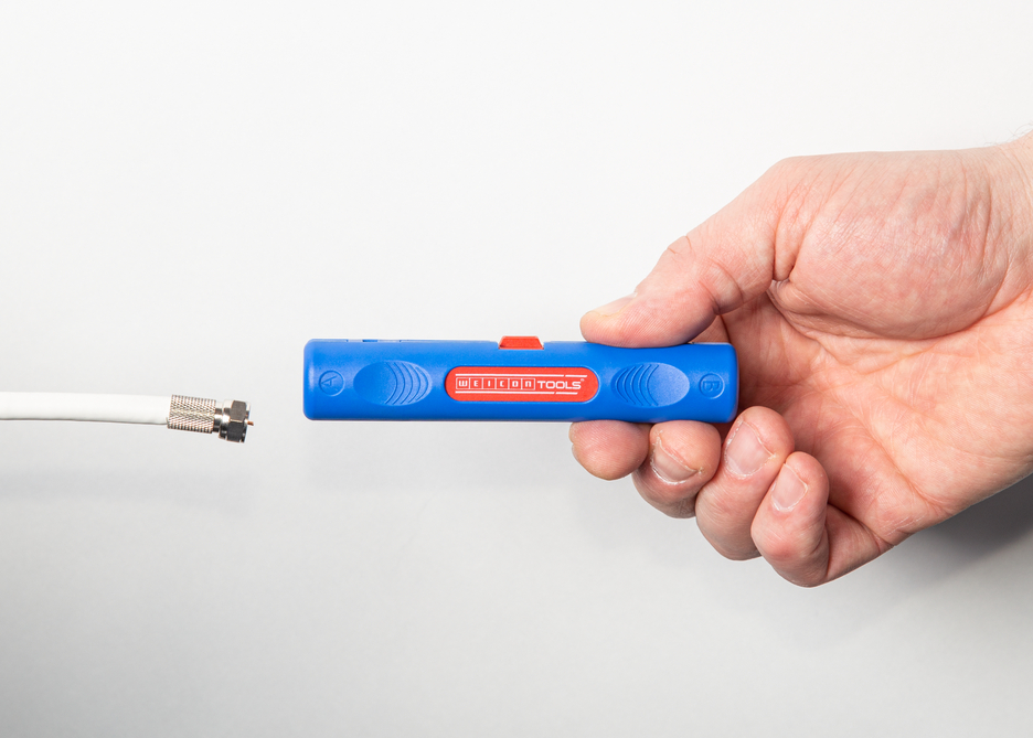 Einfache Handhabung durch ergonomische Form I Längenskala (0 - 25 mm) im Gehäuse integriert I Einstellung der Schnitttiefe nicht erforderlich I Zweistufiges Abisolieren aller gängigen Koaxialkabel I Arbeitsbereich 4,8 - 7,5 mm Ø I Auch für flexible Kabel geeignet