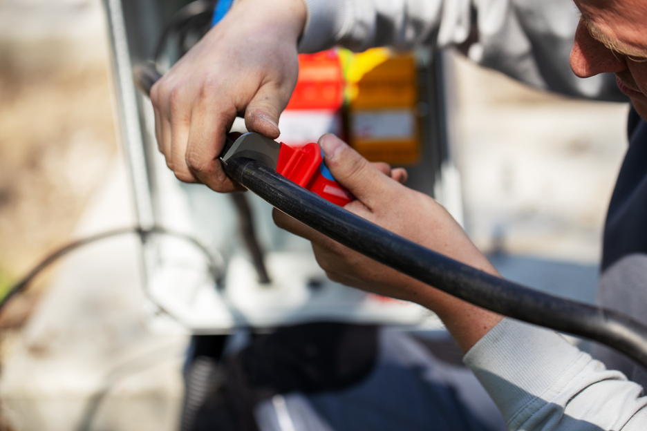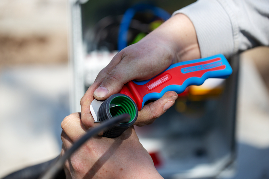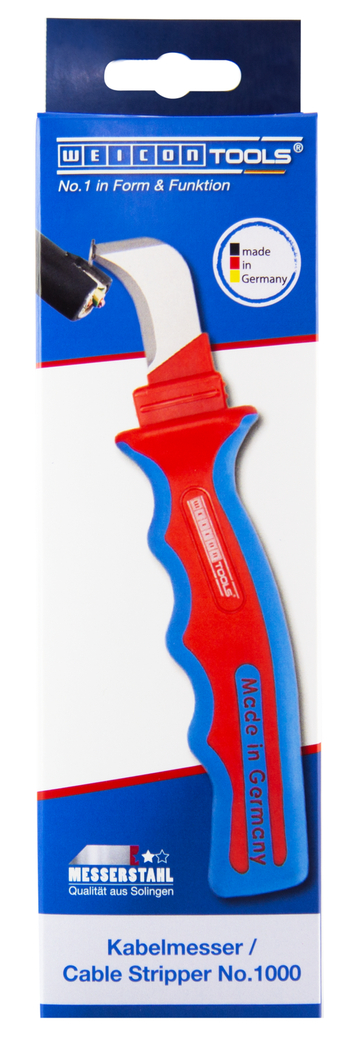 Das Kabelmesser HD No. 1000 ist sehr robust und ermöglicht ein präzises, schnelles und sicheres Abmanteln besonders dicker Kabeltypen. Die verschiedenen Lagen bei mehrfach isolierten Kabeln kann man mit dem HD No. 1000 problemlos aufschneiden. Die gebogene Klingenspitze begrenzt die Schnitttiefe und verhindert so eine Beschädigung der Leiter. Das Messer ist nach DIN EN 60900 für Arbeiten an unter Spannung stehenden Kabeln geprüft und hält bis zu 1.000 Volt stand.