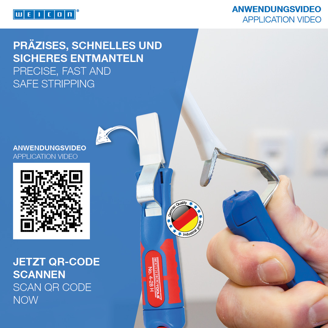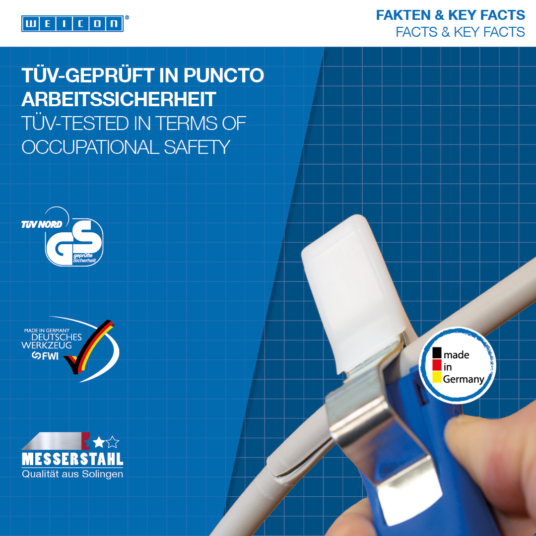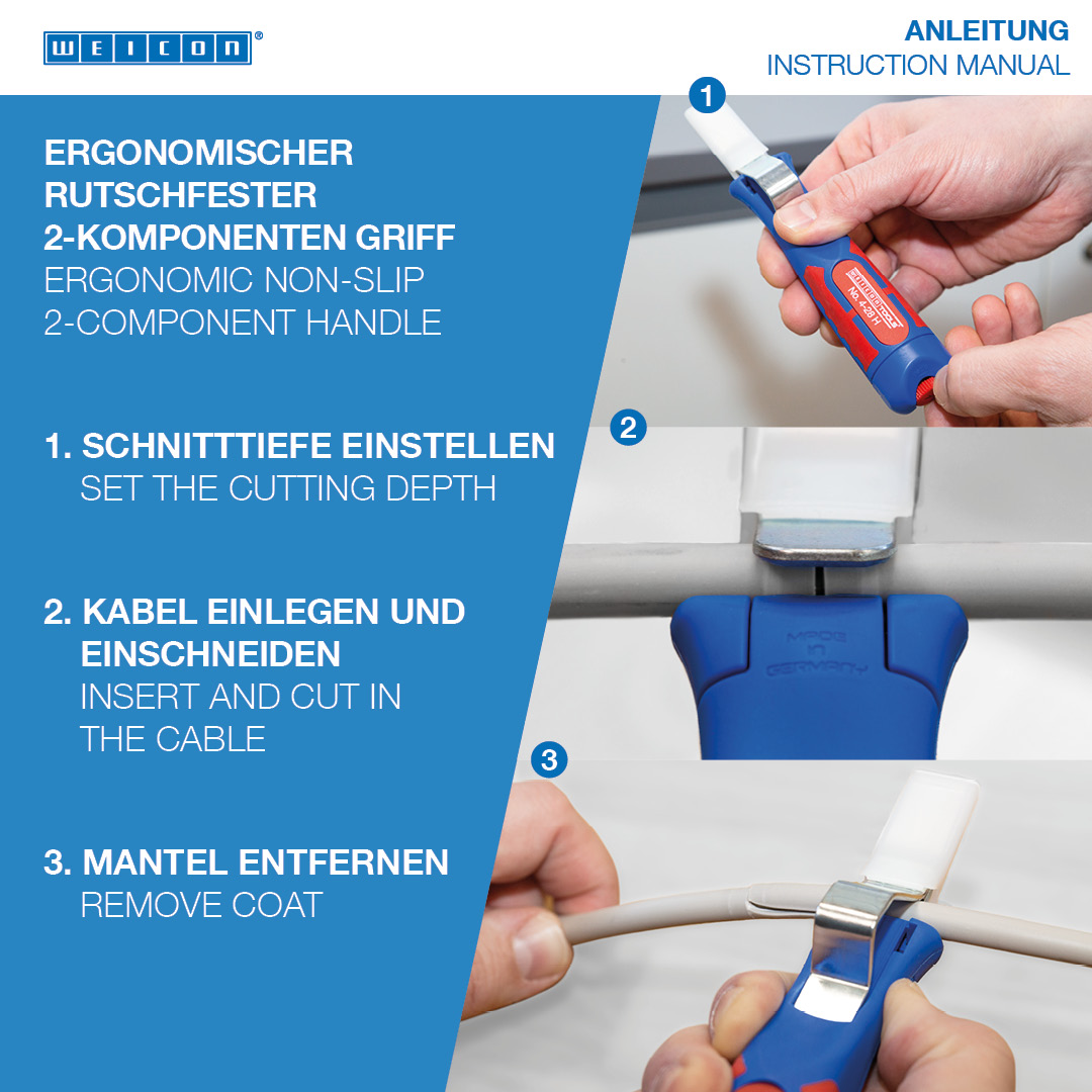 Das Arbeiten mit WEICON Abisolierwerkzeugen ist nur an potentialfreien, nicht unter Spannung stehenden Kabeln und Leitungen zulässig.