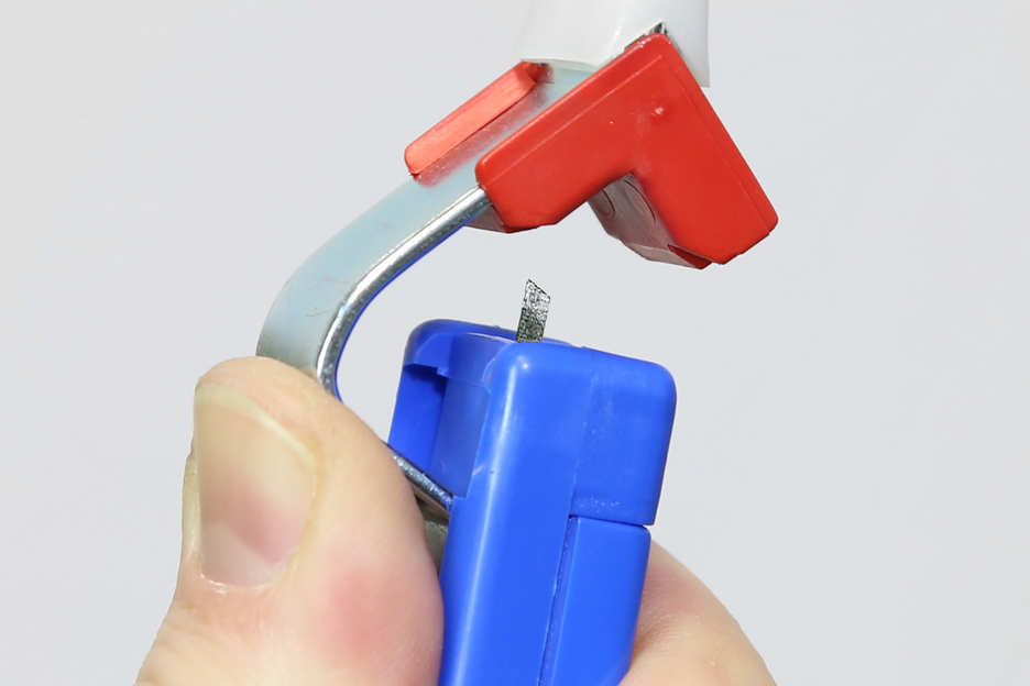 Das Kabelmesser No. C 4-28 ermöglicht ein präzises, schnelles und sicheres Entmanteln aller gängigen Rundkabel mit einem Durchmesser zwischen 4 und 28 Millimeter. Mit Hilfe einer Stellschraube am Griffende kann die Schnitttiefe des Schneidmessers stufenlos reguliert werden. Dies verhindert eine Beschädigung der inneren Leiter. Das Schneidmesser ist selbstdrehend im Gehäuse integriert und ermöglicht so die automatische Umstellung von Rund- auf Längsschnitt. Zusätzlich verfügt das No. C 4-28 über eine Hakenklinge, die mit einer Schutzkappe versehen werden kann. Diese Kappe rastet sicher auf der Klinge ein, was die Verletzungsgefahr deutlich reduziert.