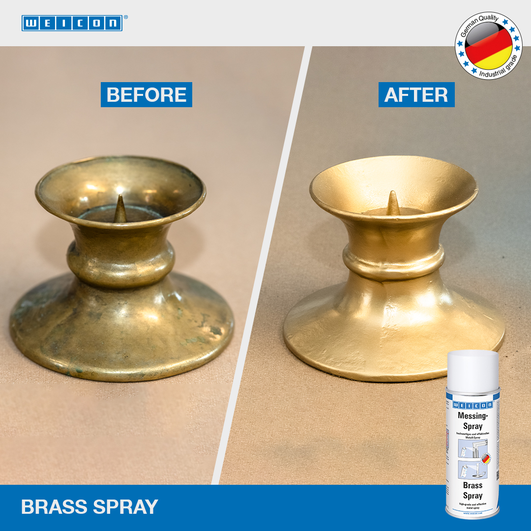 WEICON Messing-Spray ist eine reine Metallbeschichtung mit hohem Messinganteil und im messing-typischen Farbton. Geeignet zum Schutz und zur optischen Aufwertung unterschiedlicher Materialien. WEICON Messing-Spray kann bei Restaurationsarbeiten, für Dekorationszwecke, im Kunstgewerbe, Hobby- und Heimwerkerbereich zum Einsatz kommen. Es eignet sich für ein nachträgliches Ausbessern gelbchromatisierter Teile, die durch Bohren, Schweißen oder Fräsen beschädigt wurden.