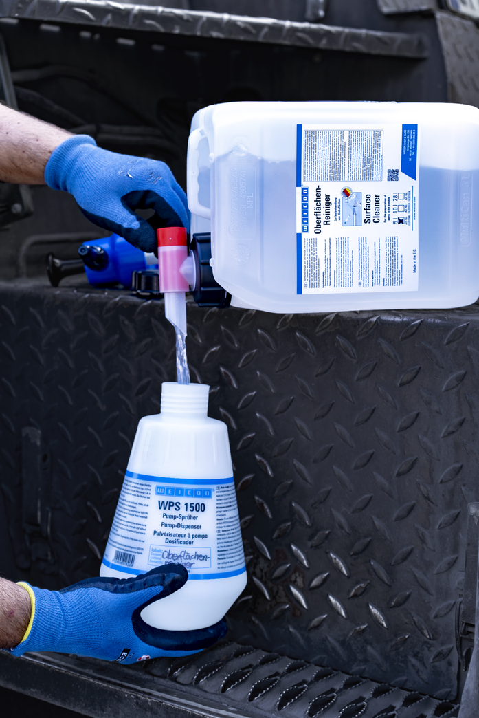 WEICON Oberflächenreiniger wird zum Reinigen und Entfetten von Oberflächen verwendet, die mit WEICON Kleb- und Dichtstoffen verklebt oder abgedichtet werden sollen. Oberflächenreiniger kann auf Werkstoffen wie Metall, Glas, Keramik und den meisten Kunststoffen eingesetzt werden. Er kann zum Beispiel zum Reinigen und Entfetten von Maschinenteilen im Zuge von Wartungsarbeiten genutzt werden.
