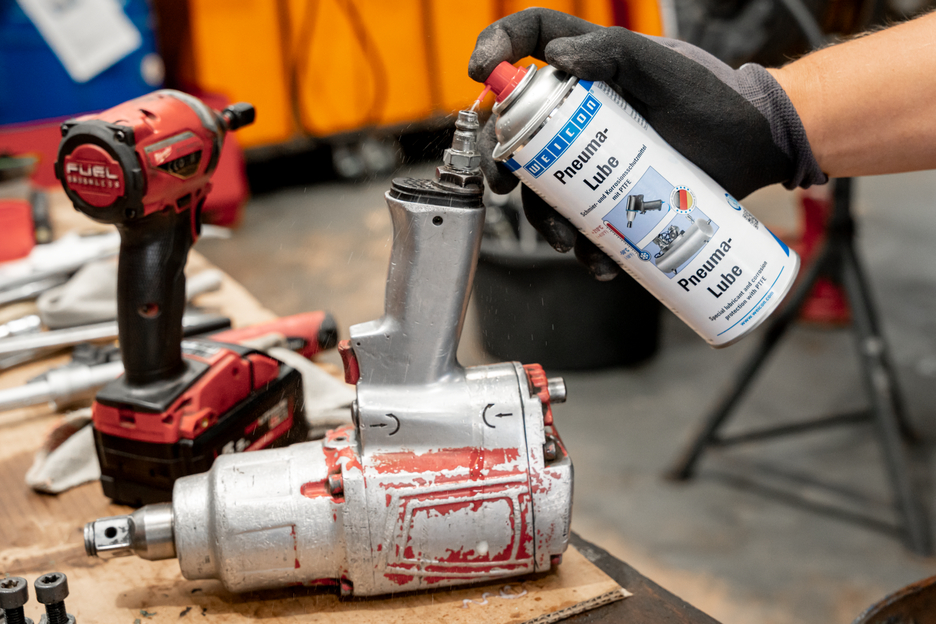 WEICON Pneuma-Lube ist als Schmier- und Korrosionsschutzmittel die Universallösung für alle beweglichen und zu schützenden Teile im Bereich Druckluftgeräte und -zubehör. Die spezielle Produktformulierung mit einem hohen PTFE-Anteil ermöglicht den Einsatz für vielfältige Aufgaben: Schmierung, Korrosionsschutz, Reinigung, Wasserverdrängung und Konservierung. Das Produkt kann nicht nur bei der Installation oder Wartung von Druckluftgeräten oder -zubehör, sondern auch bei laufendem Betrieb eingesetzt werden. Seine ausgezeichnete Witterungsbeständigkeit erlaubt den Einsatz auch in anderen Bereichen, z.B. in der On- und Offshore Industrie.