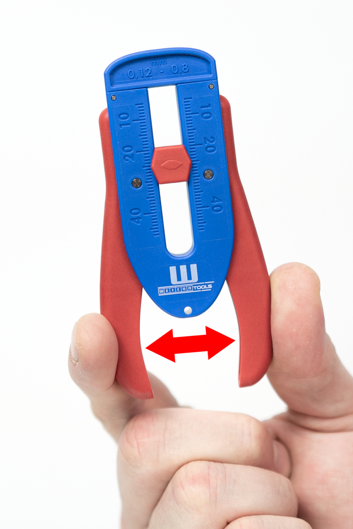 schnelles, sicheres und präzises Abisolieren von feinen Leitern und Drähten | stufenloser Abisolierbereich von 0,12 mm - 0,8 mm (36-20 AWG) | Abtastsystem stellt sich automatisch auf den jeweiligen Leiterquerschnitt ein I Präzises Arbeiten durch verstellbaren Längenanschlag von 5 - 45 mm I professionelle Abisoliertechnik; für Rechts- und Linkshänder geeignet