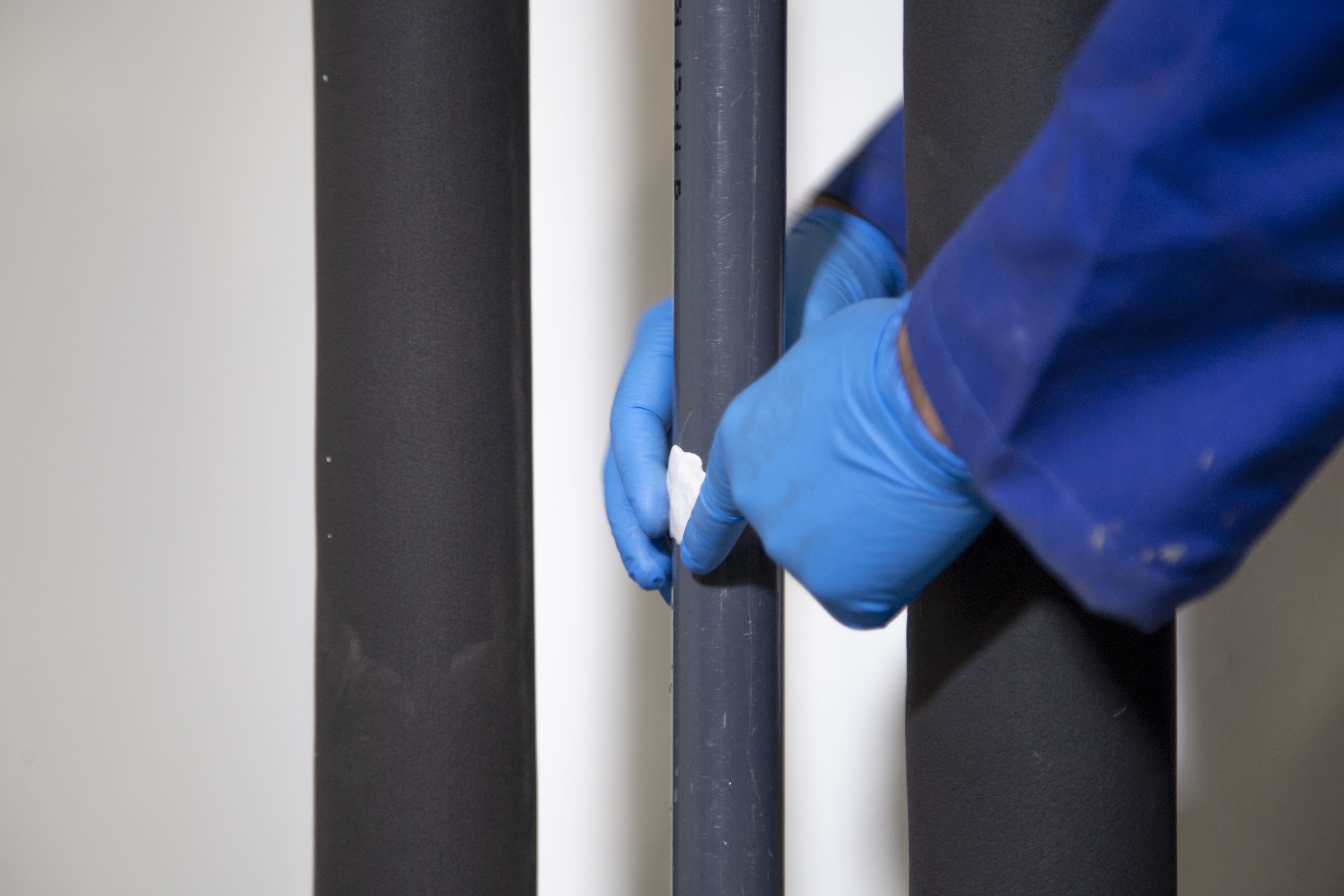 Um die Haftung auf dem Rohr zu verbessern, sollte die Oberfläche mit einer Drahtbürste leicht angeraut werden.
