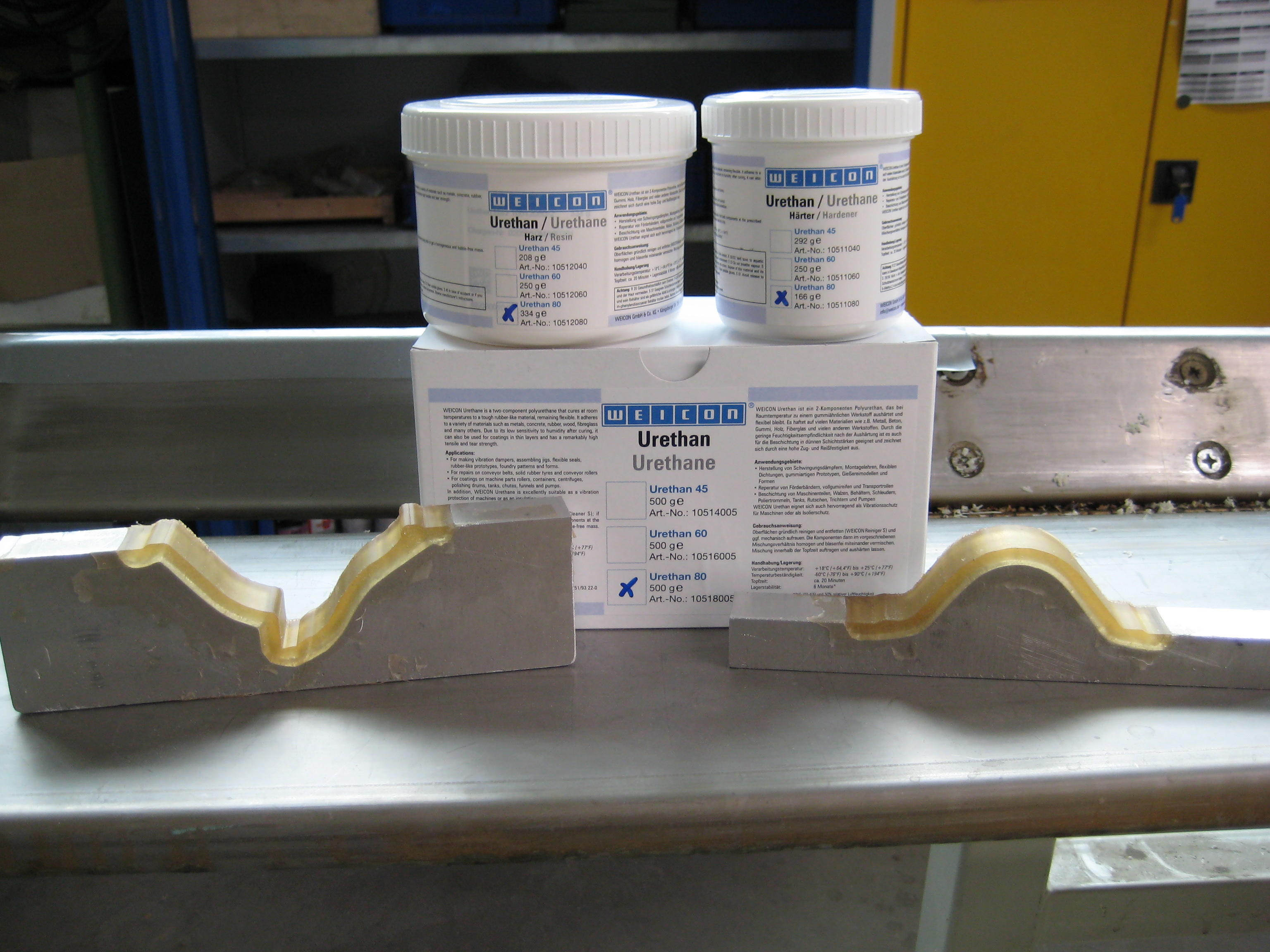 WEICON Urethane sind 2-Komponenten Polyurethan-Klebstoffe, die bei Raumtemperatur zu einem gummiähnlichen Werkstoff aushärten und bis -60 °C (-76 °F) flexibel bleiben. WEICON Urethane haften auf den unterschiedlichsten Materialien, wie z. B. Metall, Beton, Gummi, Holz oder Fiberglas. In Verbindung mit den Epoxidharz-Systemen WEICON Plastik-Stahl sind sie auch als flexible Beschichtungen einsetzbar. Durch die geringe Feuchtigkeitsempfindlichkeit eignen sich die Urethane auch für Beschichtungen in dünnen Schichtstärken. WEICON Urethane zeichnen sich außerdem durch hohe Zug- und Reißfestigkeiten aus.