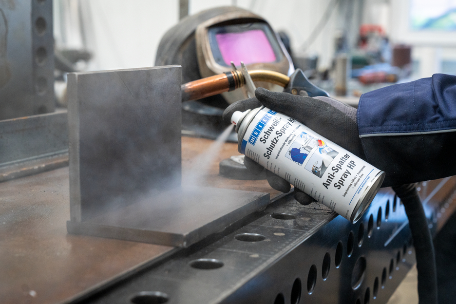 WEICON Schweißschutz-Spray HP ist ein hochwertiges Trenn- und Schmiermittel und dient zur Reinigung und Sauberhaltung von Schweißspitzen, Schweißdüsen und Gasdüsen. Gleichzeitig schützt es zu schweißende Werkstücke und Oberflächen vor der Anhaftung und Einwirkung von Schweißspritzern, ohne die Schweißnaht zu beeinträchtigen. Das silikonfreie Schweißschutz-Spray bietet einen langanhaltenden Schutz für die behandelten Oberflächen. Durch die Verwendung des Sprays werden Stillstandzeiten und Unterbrechungen im Produktionsprozess zur Reinigung der Schweißgeräte minimiert. Das Spray eignet sich hervorragend für die Verwendung auf Edelstahl, kann aber auch auf vielen weiteren Materialien, wie Aluminium, strukturellem Stahl oder NE-Metallen, zum Einsatz kommen. Der Einsatz des Sprays macht eine Nachreinigung der Werkstücke mit Spatel, Bürste oder Meißel überflüssig. Eine Nachbehandlung der Werkstücke (z. B. Brünieren, Galvanisieren, Eloxieren oder Lackieren) ist ohne besondere Reinigung möglich. Lediglich bei zu starkem Einsprühen kann eine Reinigung, z. B. mit WEICON Sprühreiniger S, erforderlich sein.