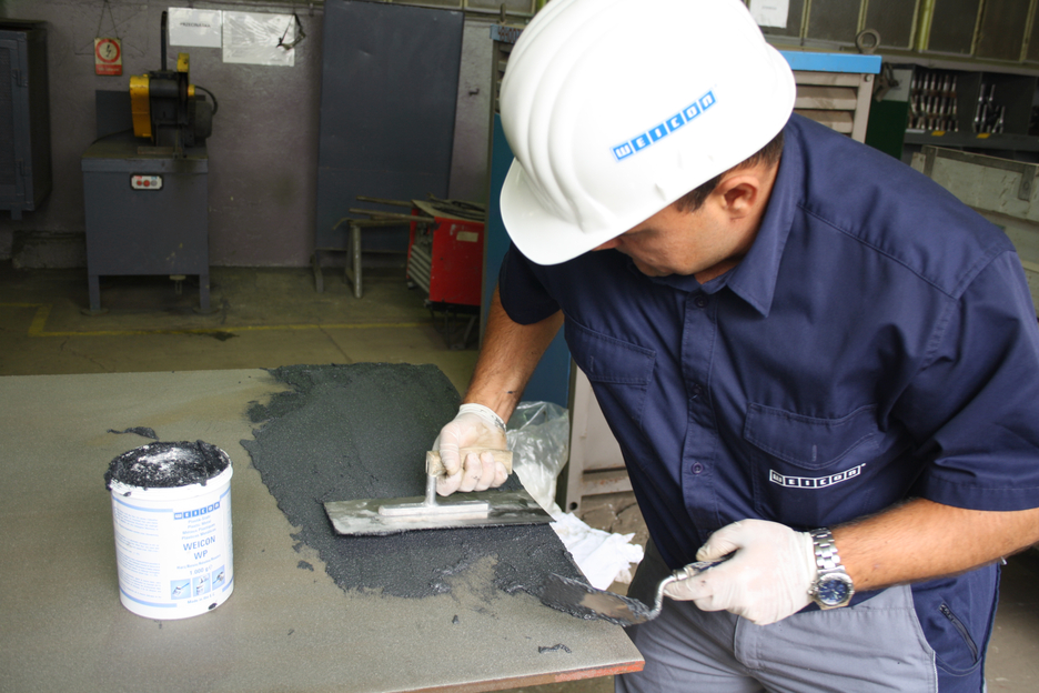 WEICON WP dient dem Schutz stark beanspruchter Oberflächen. Eine Beschichtung mit dem Epoxidharz-System bietet hohe Festigkeiten gegen Verschleiß und Abrieb und ist extrem beständig gegenüber Chemikalien. Plastik-Stahl WEICON WP verhindert Metallverlust und ersetzt bisher übliche verschleißbeständige Legierungen, Keramikkacheln oder Gummiauskleidung sowie geschweißte Metallüberzüge. Es kann sowohl zur Neubildung abgetragener Metallflächen als auch als verschleißfeste Beschichtung genutzt werden. Ein besonders hoher Schutz wird erreicht, wenn der Verschleiß durch seitlich aufprallende Partikel erfolgt.