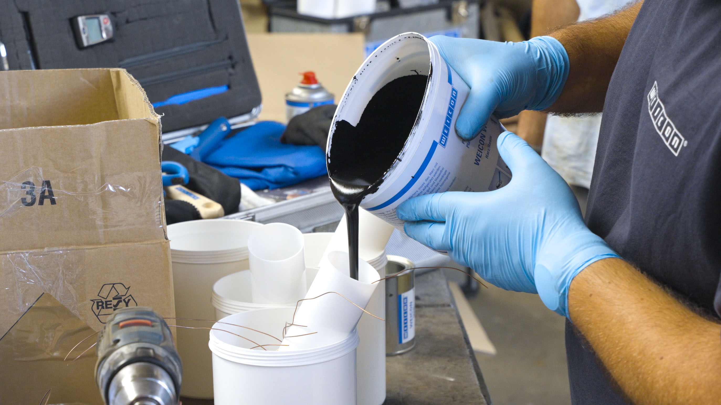 WEICON WR eignet sich für Bereiche, in denen Metallteile durch Reibung starker Abnutzung unterliegen. Beispielsweise kann das Epoxidharz-System für Reparaturen und zum Umgießen von Wellen, zum Ausgießen von Lagern, Schnitt- und Stanzwerkzeugen, zur Herstellung von Gießerei und Kopierfräsmodellen sowie Ziehformen, zum Untergießen von Maschinen und Fundamenten und als verschleißfeste Unterschicht vor dem Endbeschichten mit WEICON Keramik BL verwendet werden. Es kann im Maschinenbau, im Werkzeugbau, im Modell- und Formenbau sowie in vielen weiteren Bereichen der Industrie zum Einsatz kommen.
